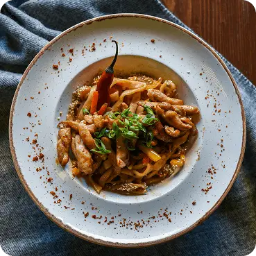 Chicken breast, Bell peppers, Carrots, Broccoli, Onion, Garlic oil, Parsley, Fresh Basil
